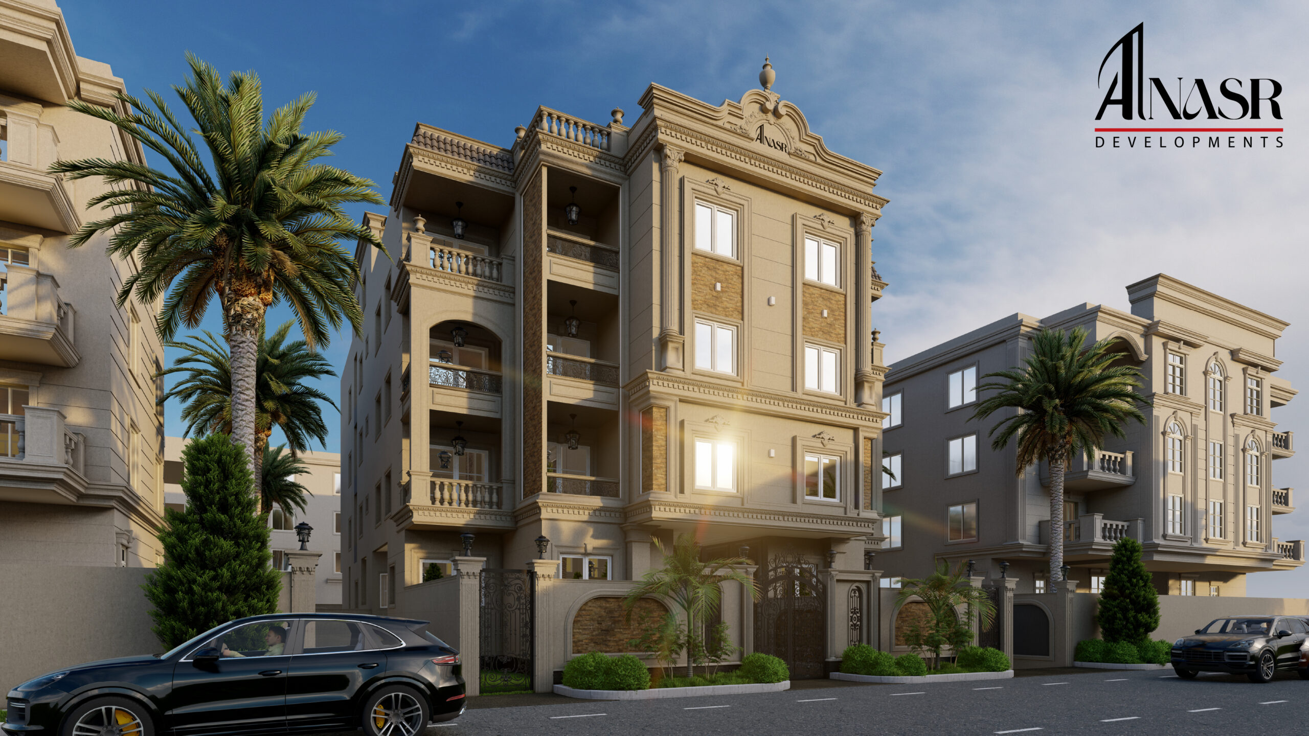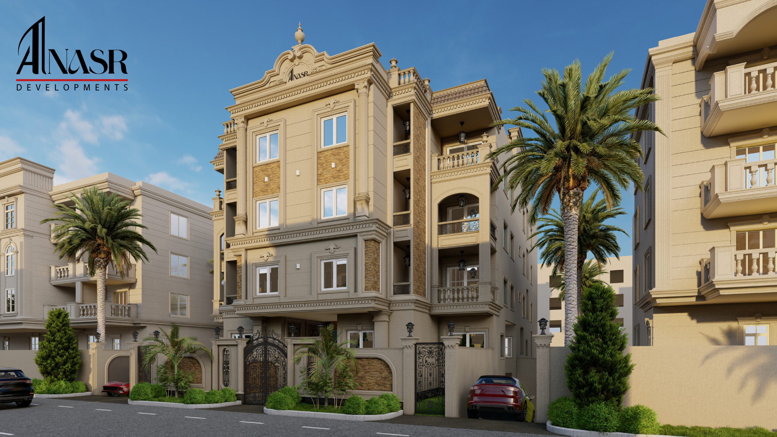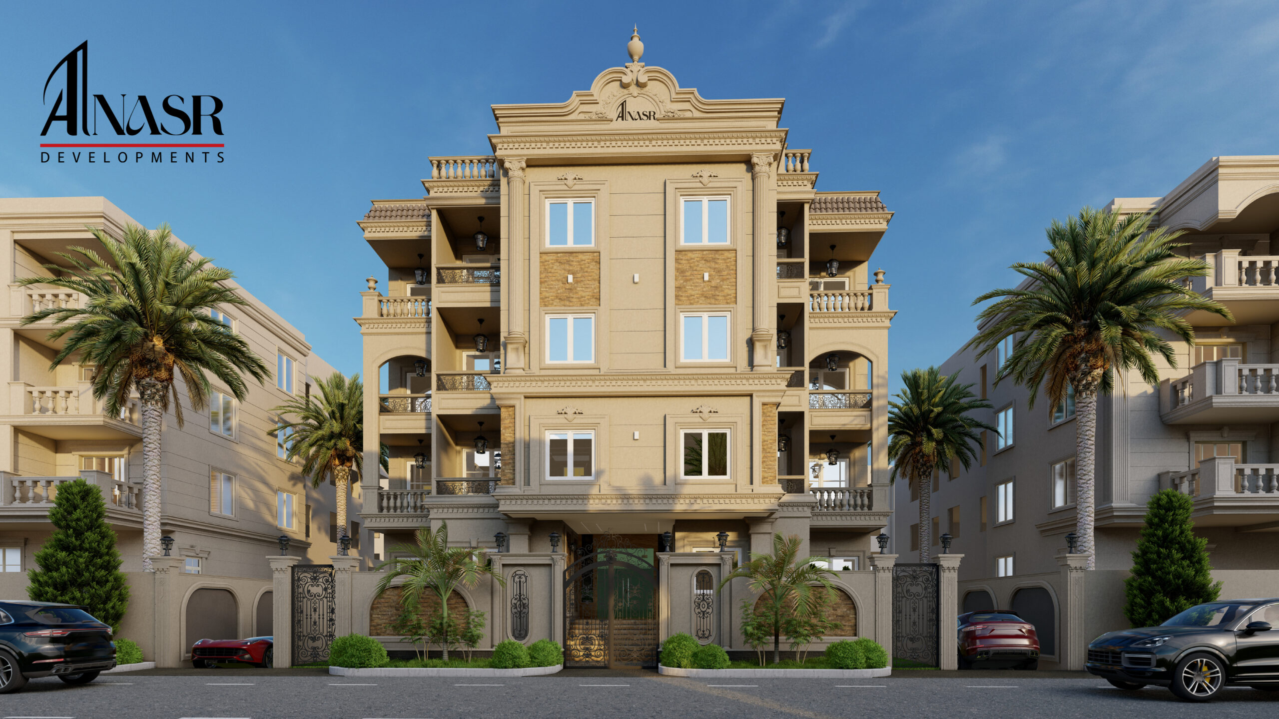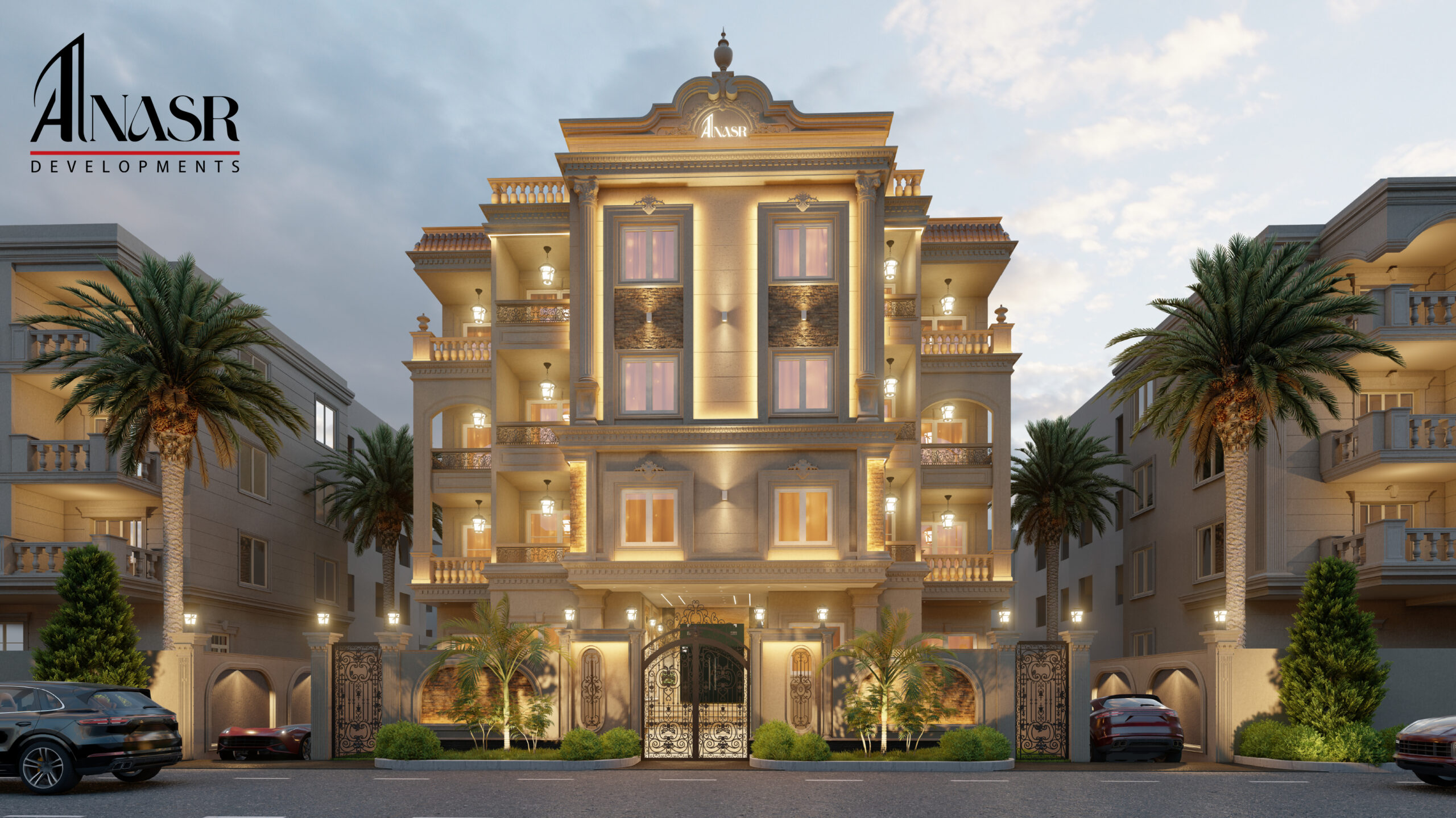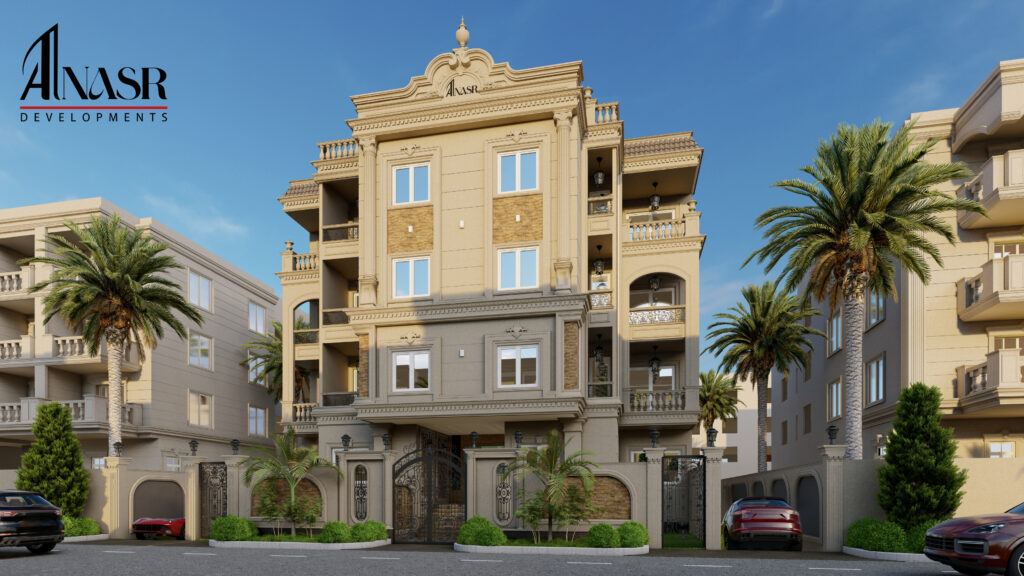 Beit Al-Watan, Fifth District, in front of Mountain View and Palm Hills, on the road separating Third and Fifth Districts. A modern residential project combining contemporary design with a strategic location.