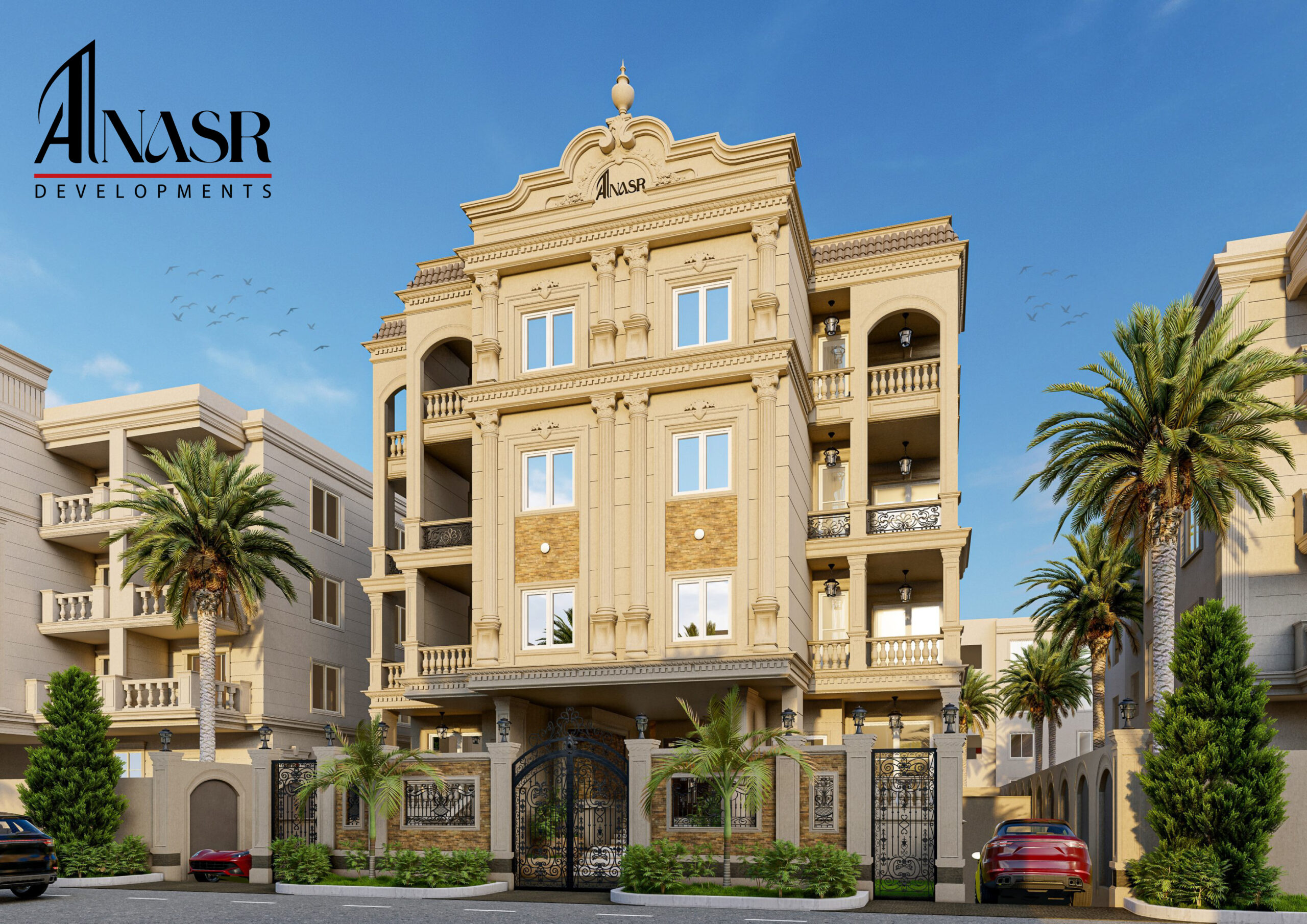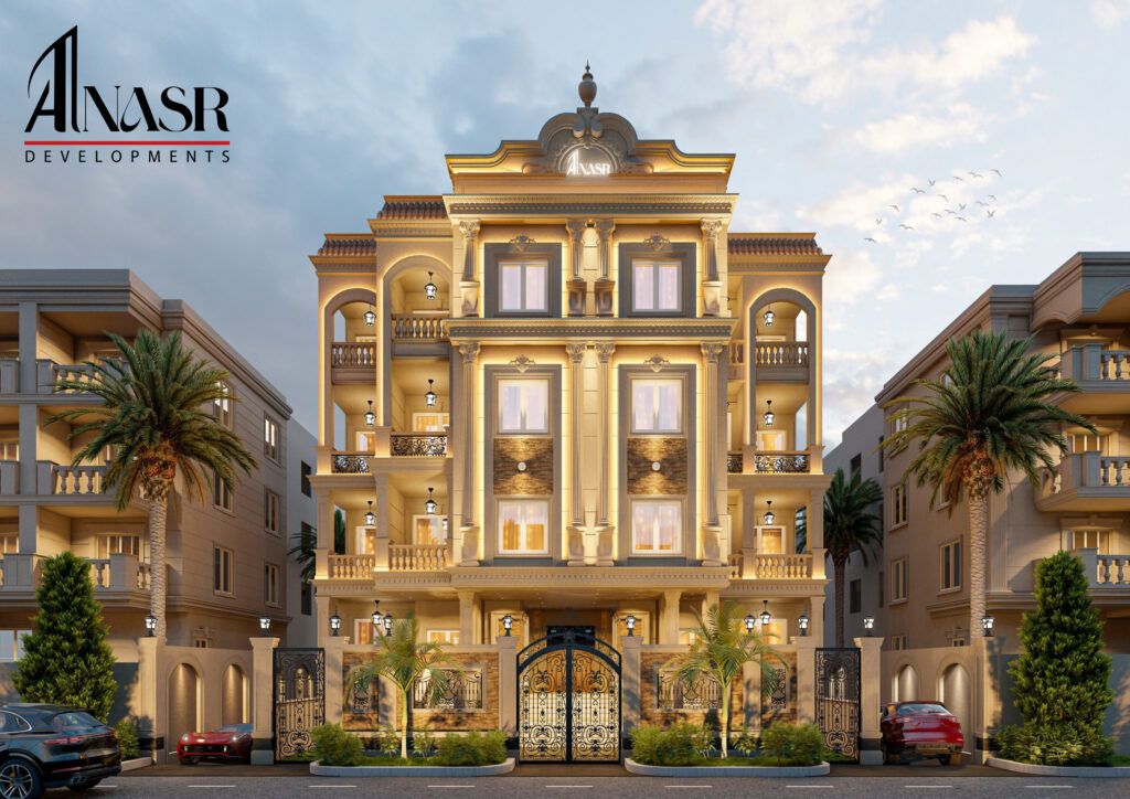 Beit Al-Watan, Second District, near Al Ahly Club, Police Club, and North 90th Street. Modern residential project combining contemporary design with a strategic location.